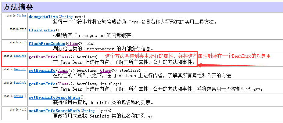 我们看下JDK的API文档里的 Introspector 这个类