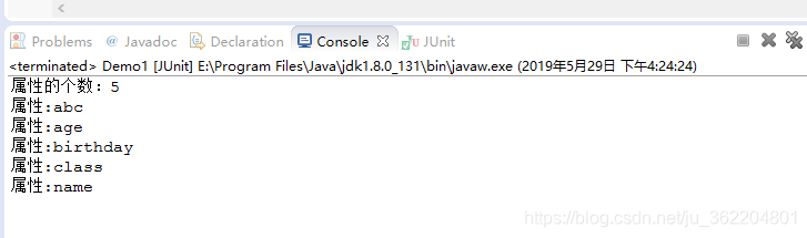 从运行结果上来看,一共得到了5个属性,除了name,age,birthday 外还打印出了abc