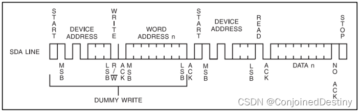 (3) 地址写入完成,主机接收到从机回传的应答信号后,主机再次向从机发送一个起始信号;