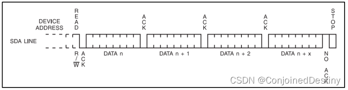 (6) 主机向从机发送停止信号,顺序读操作完成。