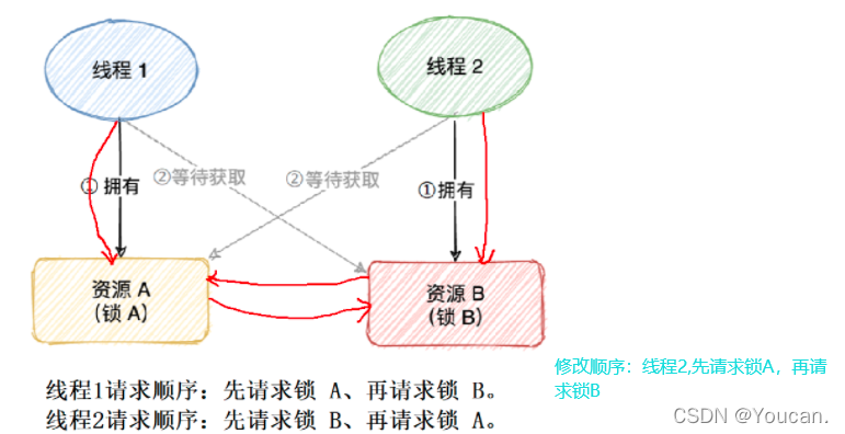 2. 修改获取锁的有序性来改变环路等待条件: