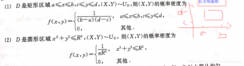 类似的可以得出就是平行于参考面一个面D,所以概率密度f(x,y)是面积S倒数。书中给出的两种特殊情形: