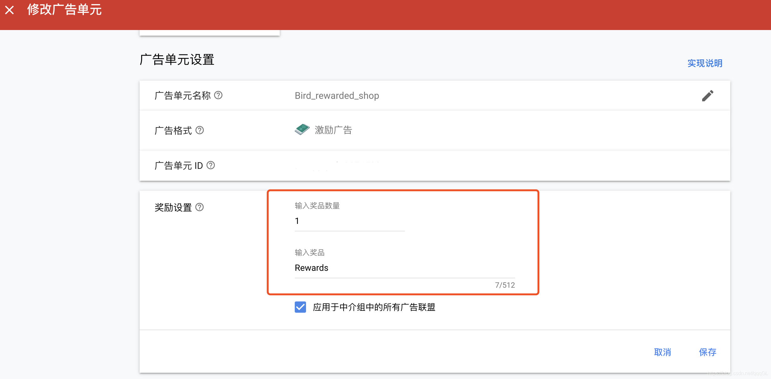 先说两个字段,这两个是在您的广告那边设置的,item就是你发奖励的商品id