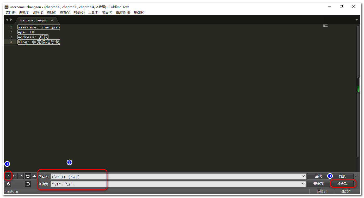 sublime text使用正则表达式批量给KV加
