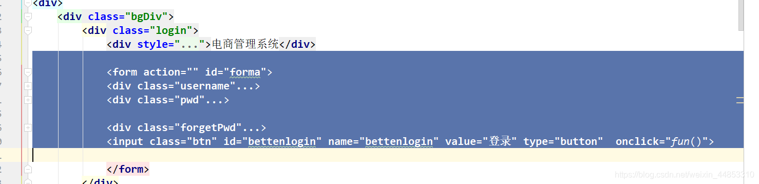 1.选中html代码块,ctrl+shift+减号- 就会全部折叠