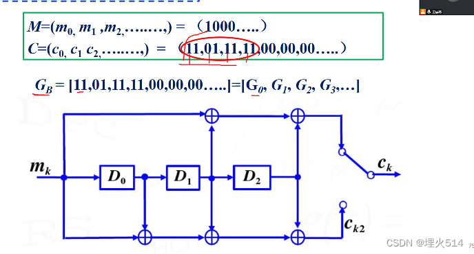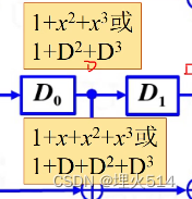 D延迟一个码组就是右移两位 ,有点类似于伽罗瓦域乘法的x倍乘法,但后者是左移,D是右移