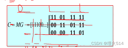 这个矩阵就是把C的结果逐渐右移一个码元得到的,但是每次右移都有一个码元被吞掉,右边没有边界,全是0