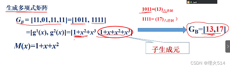 取出G无穷中的第一行作为基本生成矩阵Gb