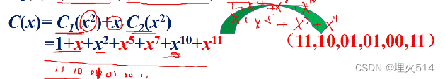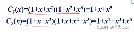 假设消息是1110 ,多项式表示就是1+x+x^2