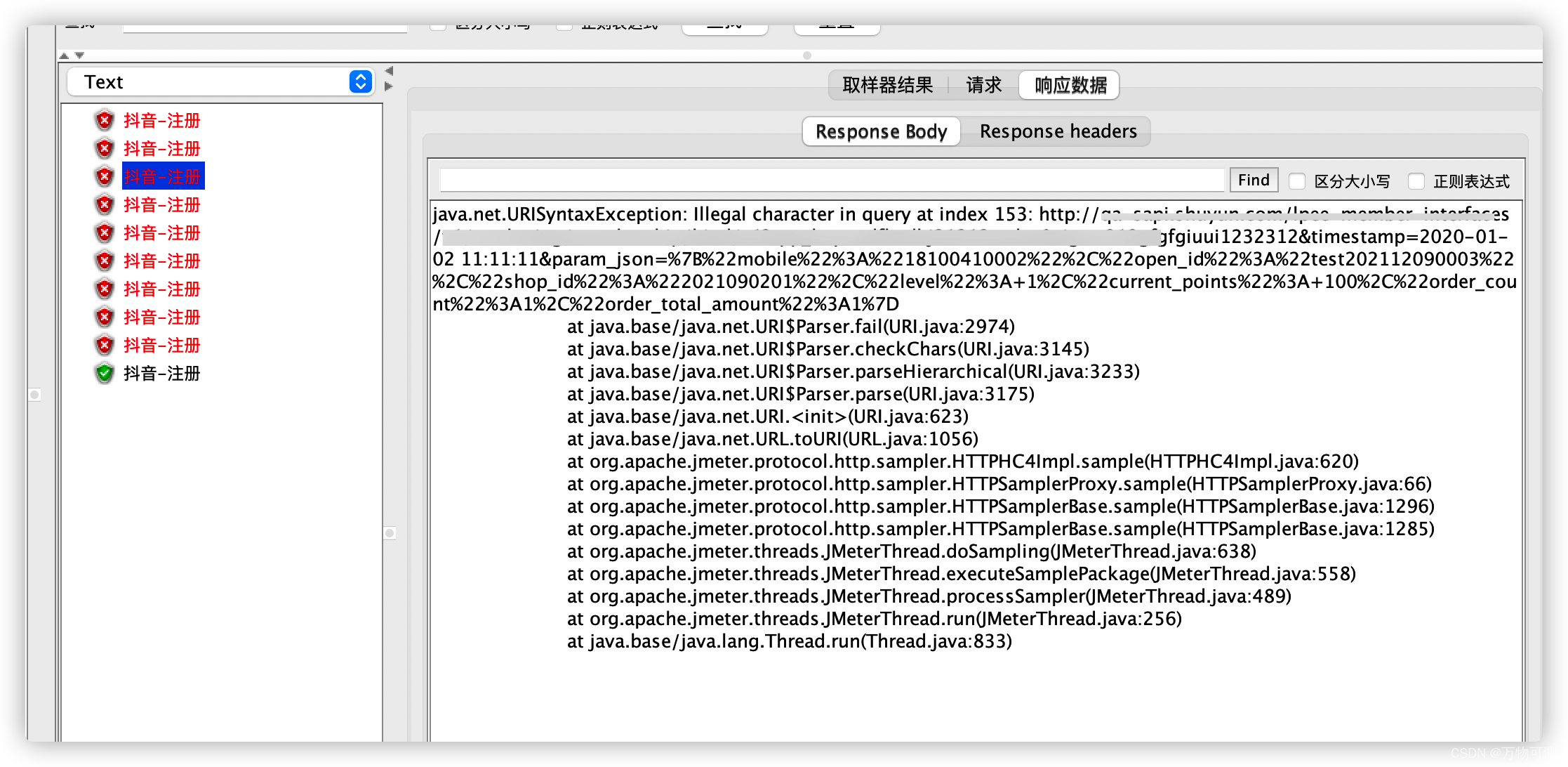 一般这种问题,可以通过结果树里面的请求参数进行定位,如: