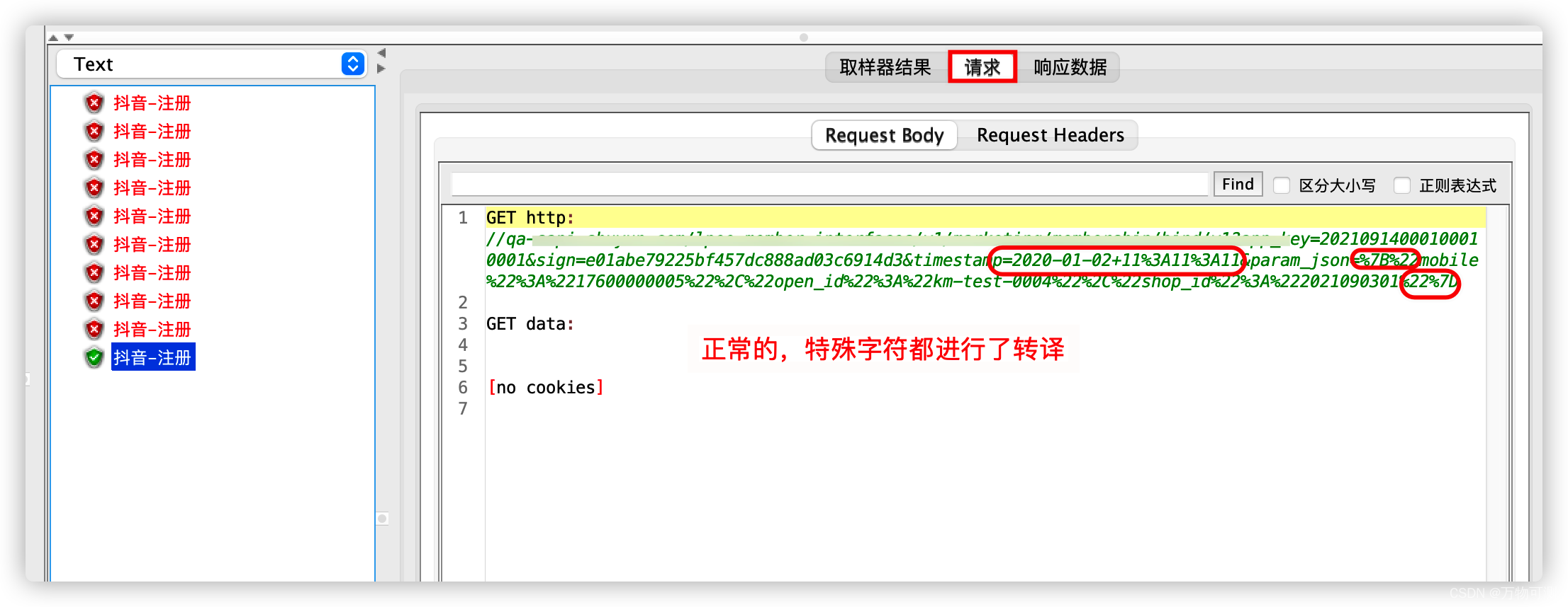 请求的时候组装的参数包含特殊字符:{ 、}、空格 等等