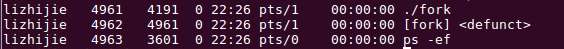 可以看到进程4962为子进程,此时标识为defunct,标识它是一个僵尸进程。