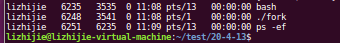 可以看到父进程pid为6248,子进程pid为6249,孙子进程oid为6250,当孙子进程结束以后(父进程结束之前)ps一下: