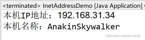 - 使用InetAddress类的方法获取本地机的名称和IP地址。