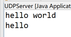 class UDPServer { public static void main(String args[]) throws Exception { DatagramSocket ServerSocket = new DatagramSocket(9876); byte[] receiveData = new byte[1024]; byte[] sendData = new byte[1024]; String sentence;while(true) { receiveData = new byte[1024];DatagramPacket receivePacket = new DatagramPacket(receiveData, receiveData.length); ServerSocket.receive(receivePacket); sentence = new String(receivePacket.getData()); InetAddress IPAddress = receivePacket.getAddress(); int port = receivePacket.getPort(); System.out.println(sentence);String capitalizedSentence = sentence.toUpperCase(); sendData = capitalizedSentence.getBytes(); DatagramPacket sendPacket = new DatagramPacket(sendData, sendData.length, IPAddress, port); ServerSocket.send(sendPacket); //ServerSocket.close();} }