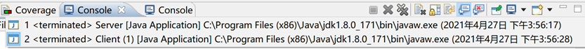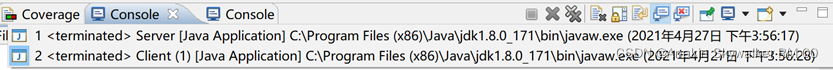 但要运行两个程序时,先开启服务器端的程序,再开启客户端的程序。我们可以在指令台中切换运行的程序。