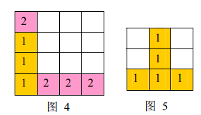 b) 当出现行和列都满足消除条件且行列共享某个方块时,行和列上满足消除条件的所有方块会被同时消除(例如下面图5 所示的情形, 5 5 5 个方块会同时被消除)。