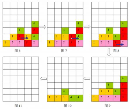 - 方块消除之后,消除位置之上的方块将掉落,掉落后可能会引起新的方块消除。注意:掉落的过程中将不会有方块的消除。