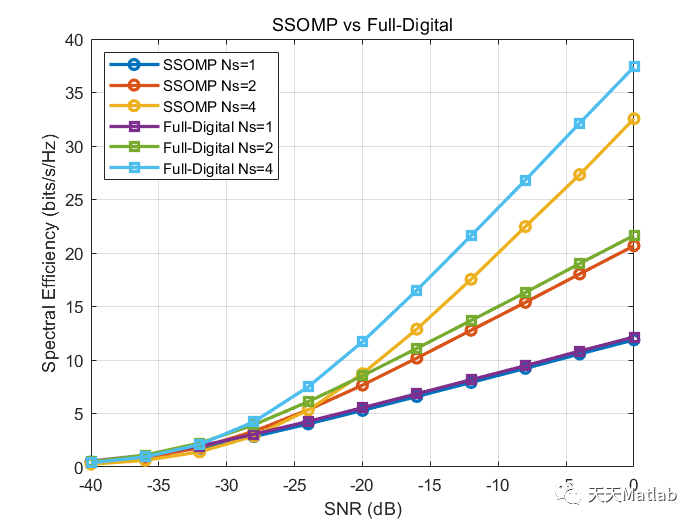 legend('SSOMP Ns=1', 'SSOMP Ns=2', 'SSOMP Ns=4', 'Full-Digital Ns=1', 'Full-Digital Ns=2', 'Full-Digital Ns=4', 'Location', 'northwest');