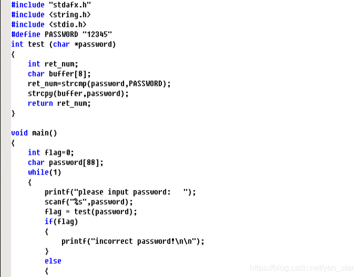 这个代码十分简单,先是定义了一本全局密码(PASSWORD:),如果用户输入的数字和密码相等显示:Success ! You are right !,否则显示:incorrect password !