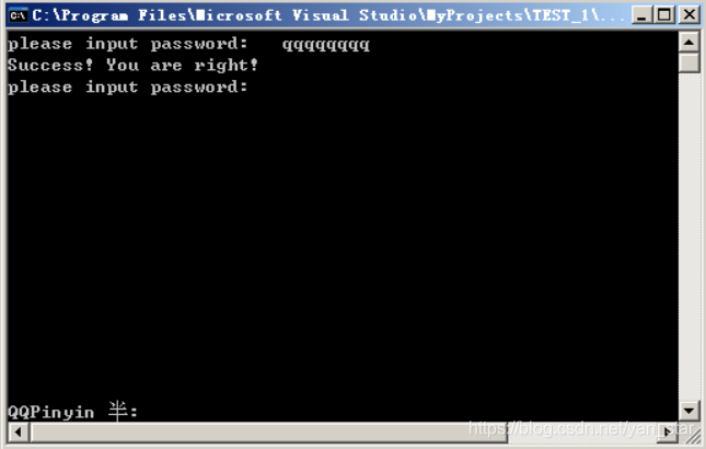 由上文可知,当ret_num的值为0的时候,此时程序就会判定我们输入的密码正确,还需知道,由于intel系统设计原因,其实就是内存中的数据按照4字节(DWORD)逆序存储,所以ret_num为1时,内存中存的是0x01000000,如果我们输入包含8个字符的错误密码,如“qqqqqqqq”,那么字符串截断符0x00将写入ret_num变量,这时溢出数组的一个字节0x00将恰好把逆序存放的ret_num变量改为0x00000000。