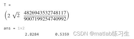 在上面这段程序中,T代表的还是符号对象,是一个符号化的常量矩阵,double函数作用后,化为double类型的数值矩阵