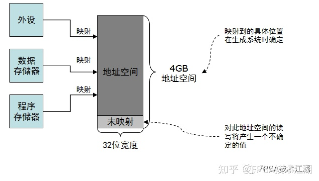Nios II地址是32位的,允许对4GB地址空间进行访问,但现有的Nios II内核都将地址限制在31位,即2GB地址空间。处理器的数据总线为32位宽度。指令集提供字节,半字(16bit)或字(32位)的读写指令。Nios II结构采用小端模式,对于保存在存储器中的大于8位的数据,最高有效位在高地址