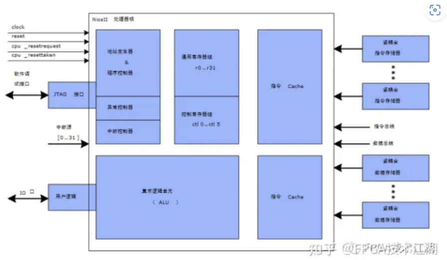Nios II 架构使用单独的指令和数据总线,通常叫做哈佛架构。