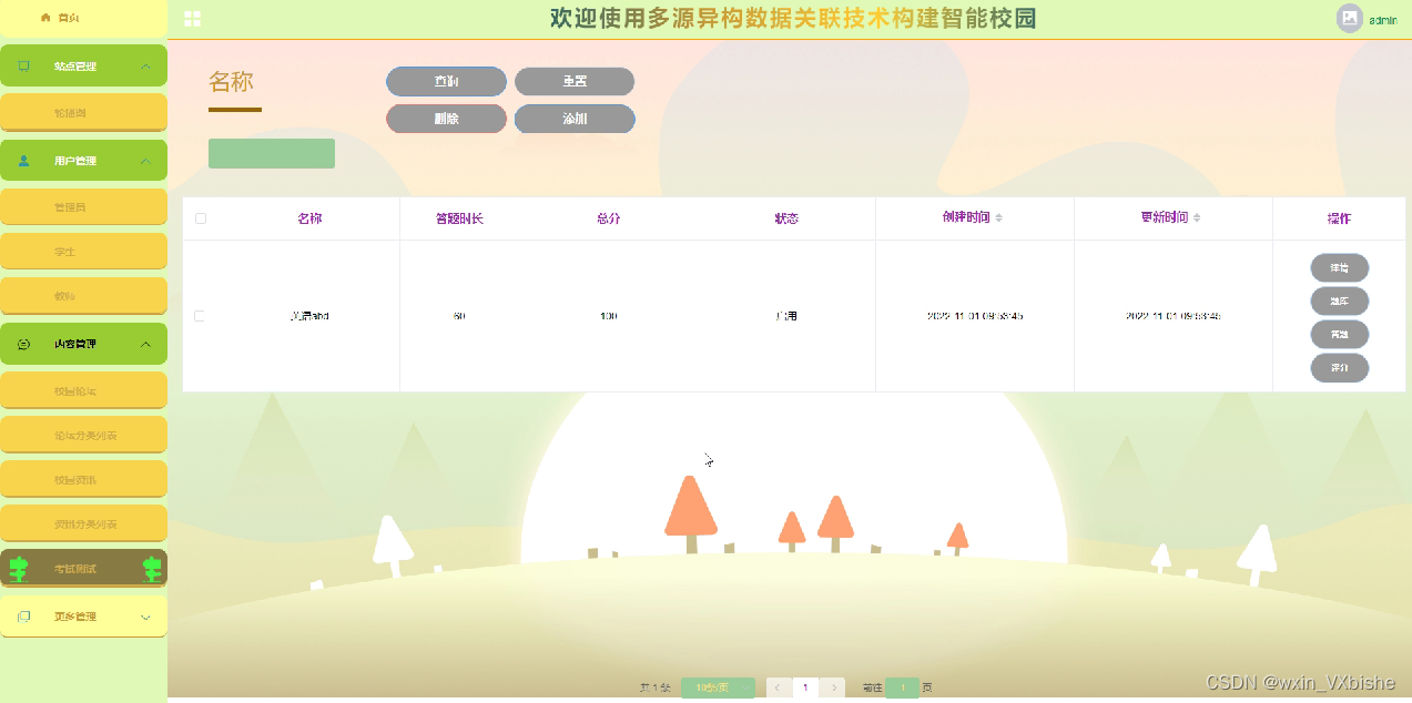 登录进入考试测试管理可以对考试信息进行增删改操作,设计考卷内容等,如图5-10所示。