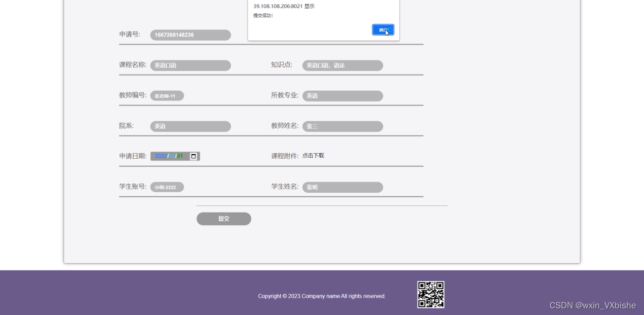 | 登录模块 | 学生名:123 密码:admin | 弹出错误提示,提示学生名错误 | 弹出错误提示,提示学生名错误 | 通过 |