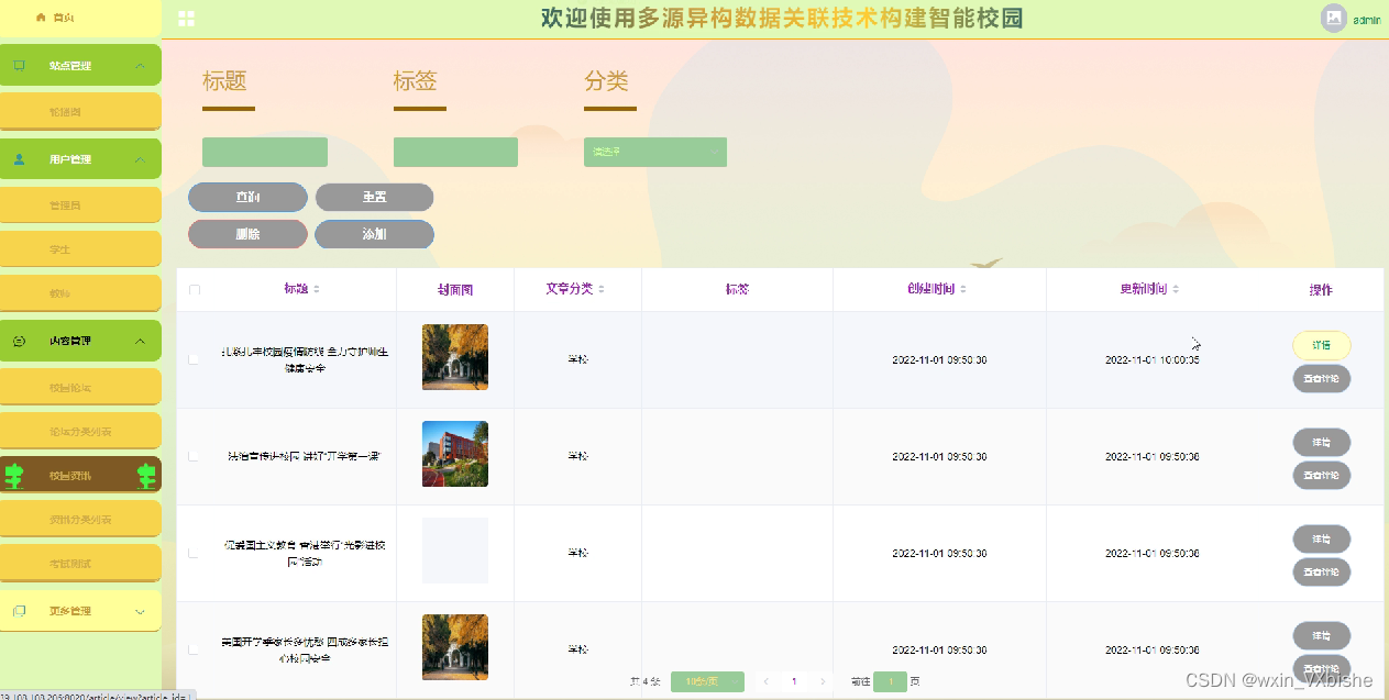 基于SSM多源异构数据关联技术构建智能校园-计算机毕设 附源码64366