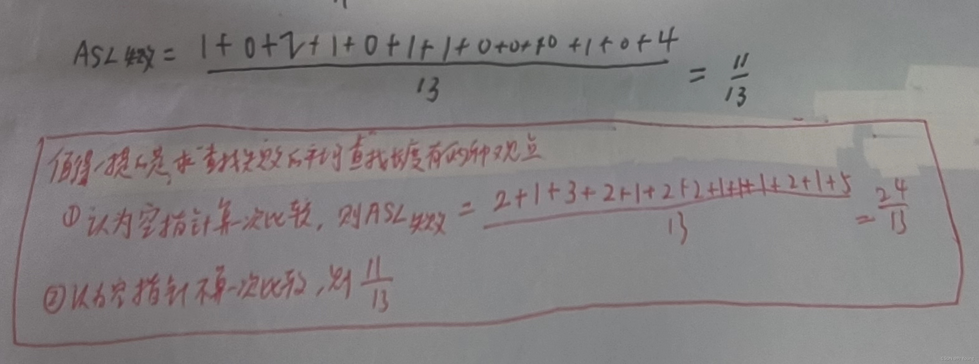 计算等概率情况下查找成功和查找失败的平均查找长度