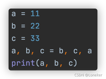 当然这种方法并不受限于两个变量,多个变量也是可以的,只是要对应好哪个变量与哪个变量交换值