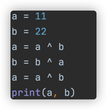 使用这种方法是不是更加炫酷了?通过按位异或的方式可以实现两个变量值的交换,并且相比于其他方法,可以减少变量的定义以及减少计算机对代码的解析时间。