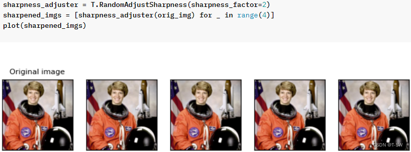 | sharpness_factor(float) | 清晰度,任意非负数。0输出模糊图像,1输出原始图像,2锐化两倍的原始图像。 |