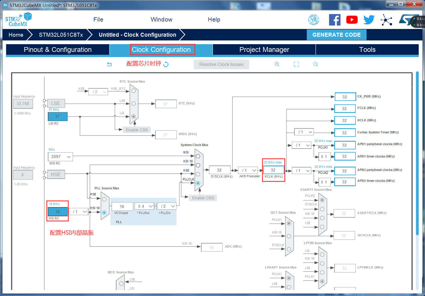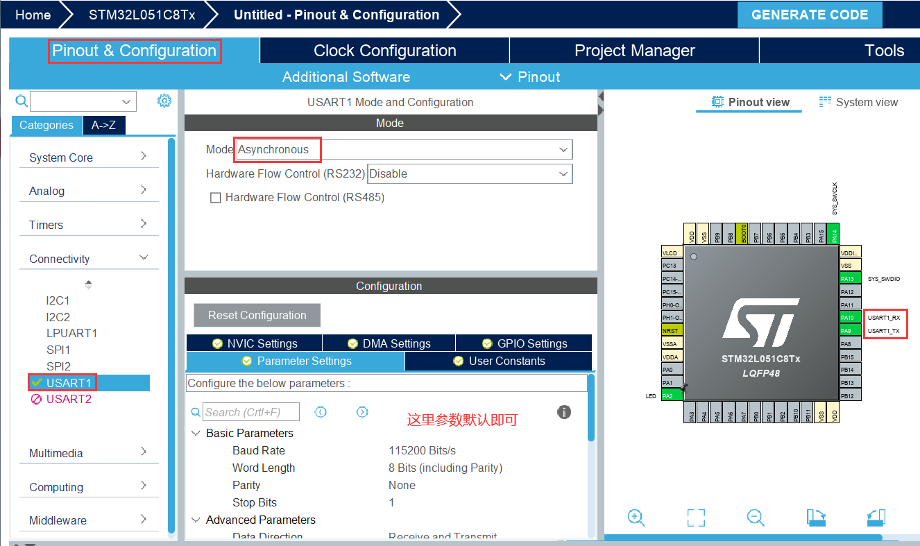 硬件(MCU):STM32L051C8T6