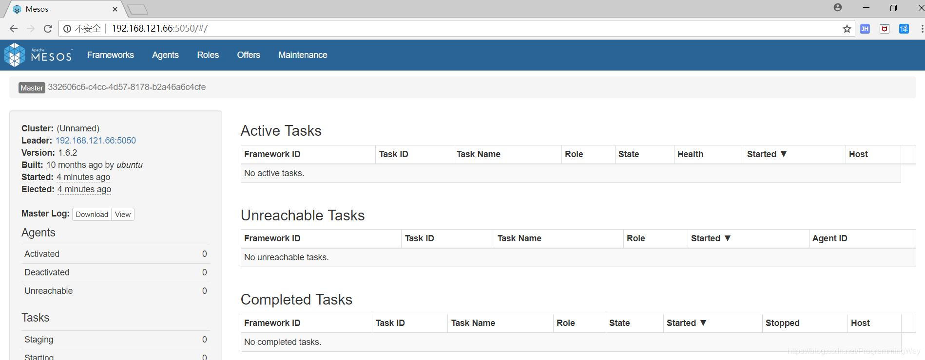 在Mesos的Agents中也可以看到新添加的从机(Agent其实就是Slave)
