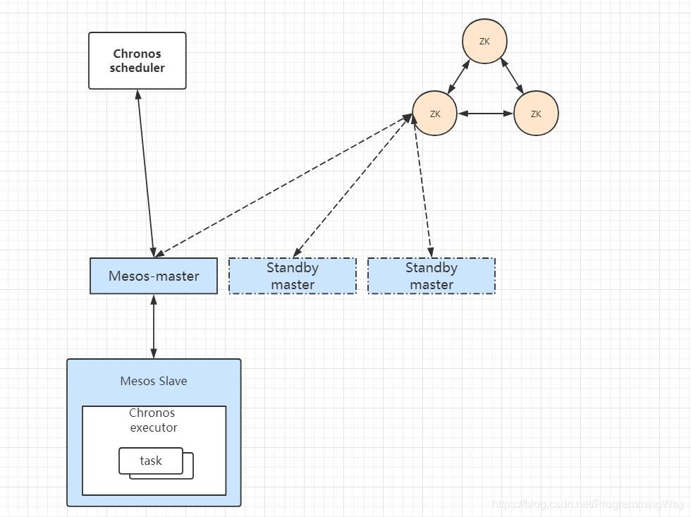 本文介绍如何使用Docker方式快速搭建三主一从(本地环境有限,实际生产环境可以最好是三主二从)Mesos+Zookeeper+Chronos定时任务集群。
