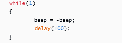 {while(1) {beep = ~beep; delay(100); }