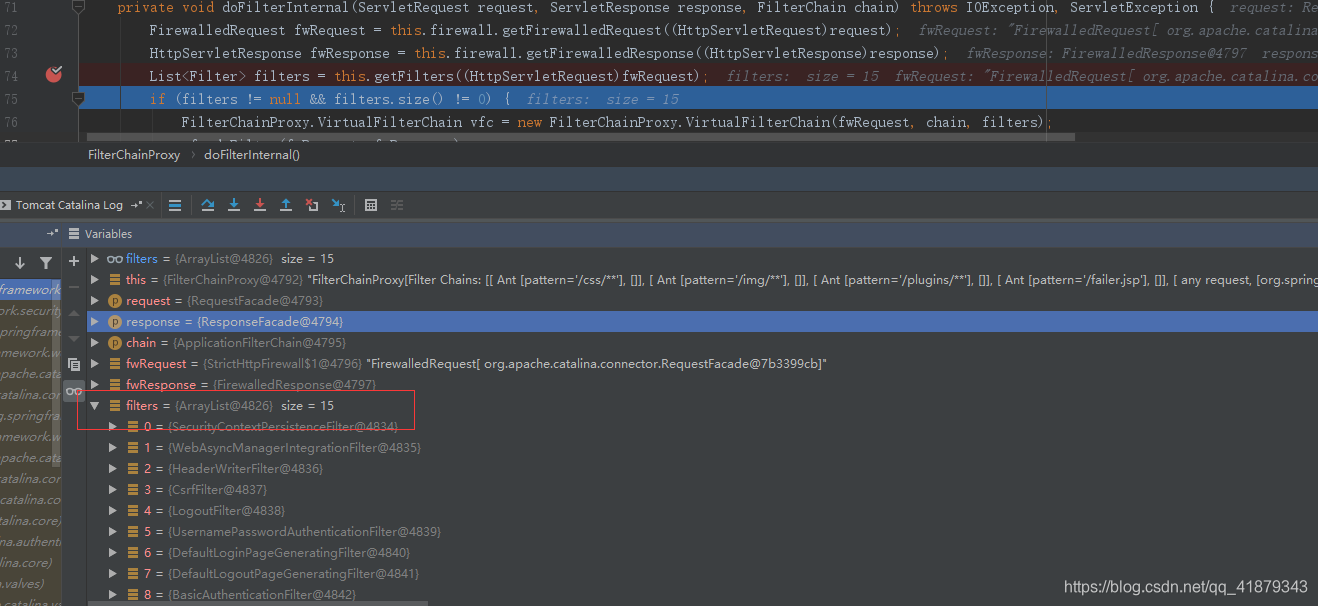 第二步debug结果如下图所示,十五个过滤器都在这里了!