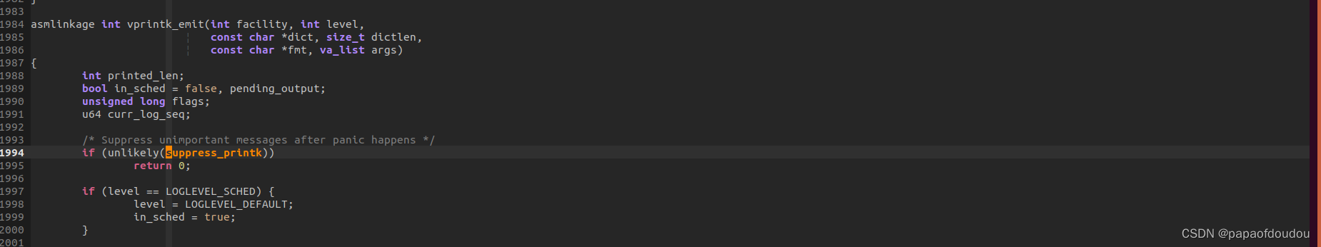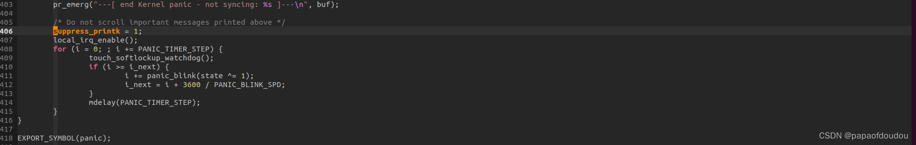 panic尾部设置的suppress_printk也会禁止printk继续往__log_buf写数据的操作。