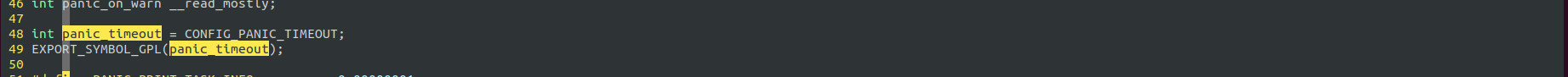panic_timeout can also be set from config macro.int panic_timeout = CONFIG_PANIC_TIMEOUT;