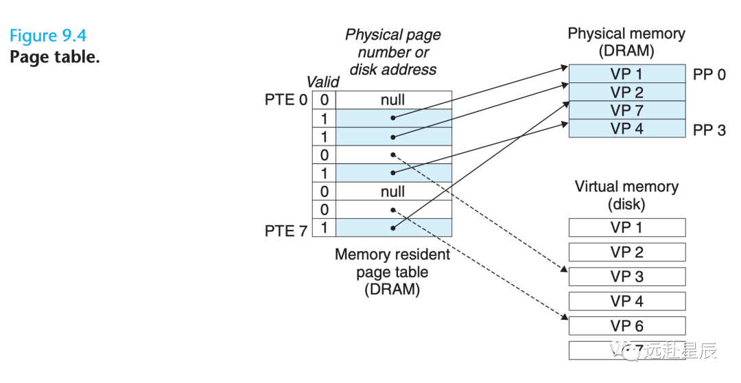页表:从数学角度来说页表就是一个函数,入参是虚拟页号 VPN,输出是物理页框号 PPN,也就是物理地址的基址。页表由页表项组成,页表项中保存了所有用来进行地址翻译所需的信息,页表是虚拟内存得以正常运作的基础,每一个虚拟地址要翻译成物理地址都需要借助它来完成。