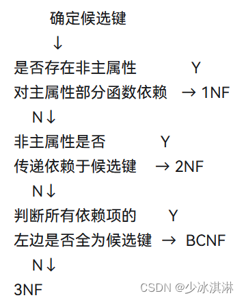 4、判断所有依赖项左边是否全为候选键, 如果是,则他是BC范式, 如果不是,就是3NF