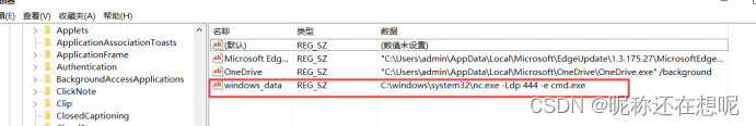重新启动windows ,再次启动时windows加载注册表中的启动项,命令nc被执行。