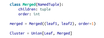 我们将使用这些来逐步合并聚类,并将其表示为NamedTuples:
