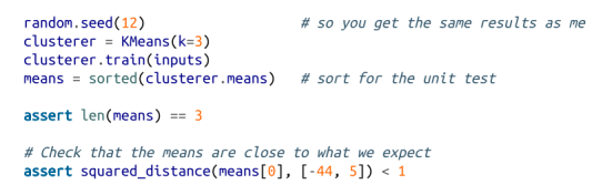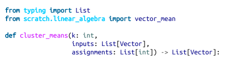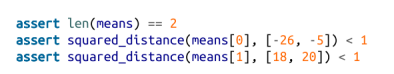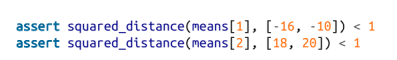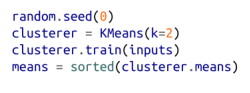 我们还需要一个函数,它给定一些向量和它们所属的聚类,来计算聚类的均值。可能存在一种情况,某个聚类没有向量分配给图。因为我们不能计算空集合的均值,所以在这种情况下,我们将随机选择其中一个点作为该聚类的“均值”: