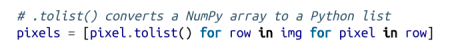 特别是,我们可以将所有像素放到一个扁平化的列表中,如: