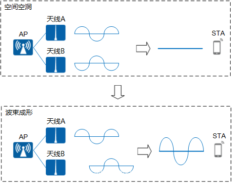 将能量集中在欲传输的方向,增强信号质量,提高信噪比,并减少对其他用户的干扰,有效提高覆盖范围。对改善AP边缘用户的吞吐量特别有效。