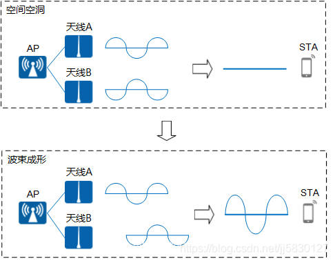 对于SU-MIMO beamforming而言,beamformer的空时流都会发向单个STA;对于DL-MU-MIMO beamforming,beamformer的不同的空时流子集指向不同STA。